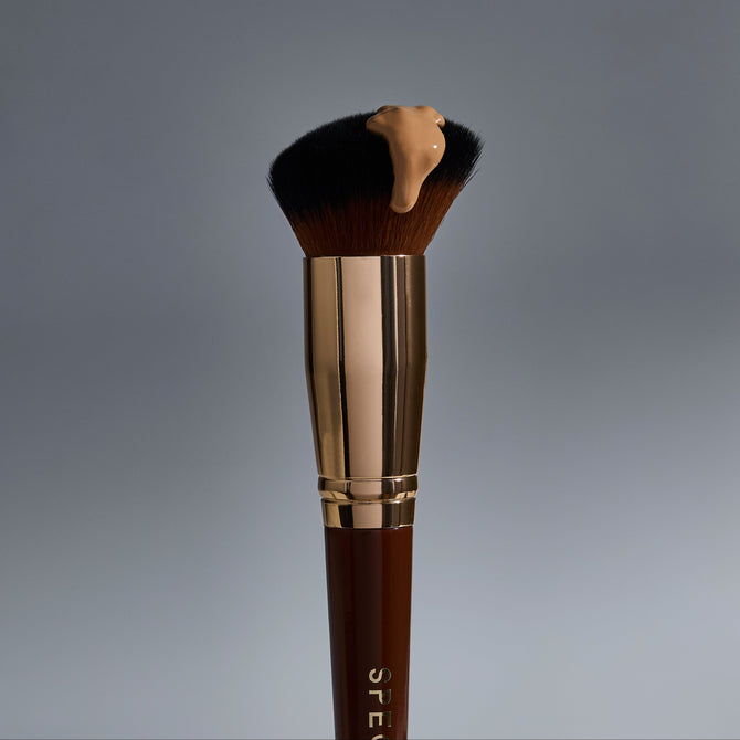 The angled head is designed to follow the natural planes of the face - glide it along the jawline, sweep it across the cheeks and up into the temples, or work around the nose and eyes for precise coverage. Think of it as your all-in-one complexion brush for achieving a truly professional, skin-like finish