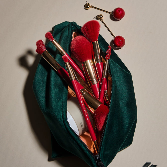 From seamlessly blended foundations and sculpted cheeks to defined eyes and perfected finishes, every brush is designed to do twice the work with half the effort. Completing the collection, a soft blending sponge ensures streak-free application, while two sumptuous velvet puffs help set and refresh your makeup for a lasting, airbrushed effect.